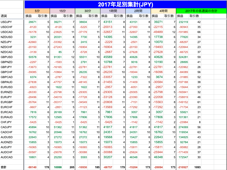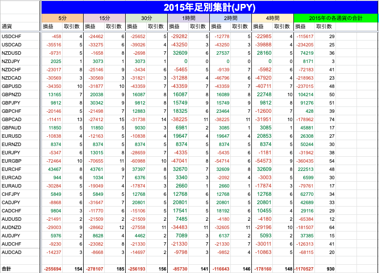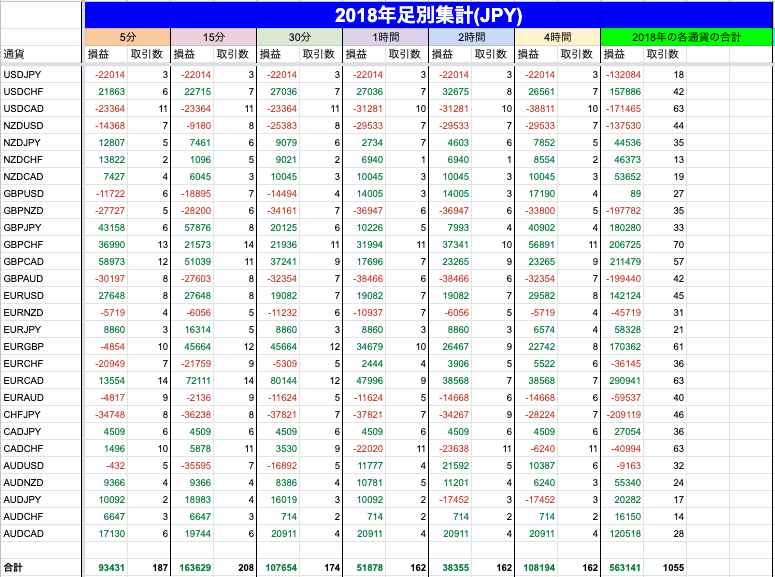 AUDJPY,AUDCHF,AUDCAD) - 対象時間足数:6つの時間足(m5・m15・m30・h1・h2・h4)
