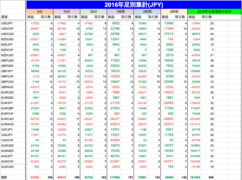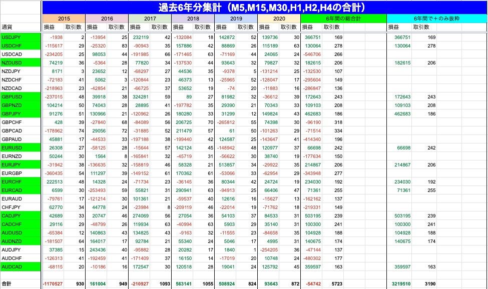 過去6年間のバックテストで年間収支が常に+(プラス)だった通貨は【CADJPY】のみでした。