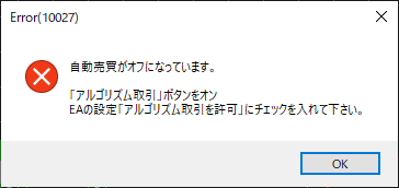 自動売買がオフになっています(10027)