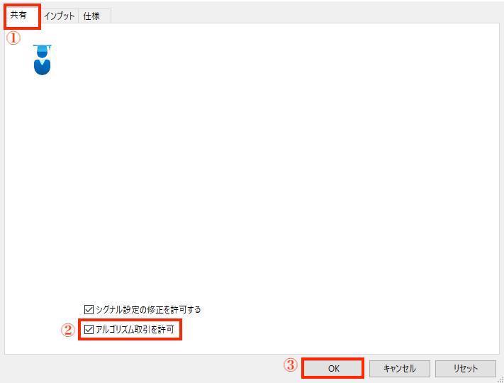 - 「アルゴリズム取引を許可」にチェックを入れる