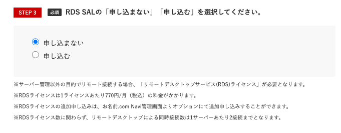 こちらは「申し込まない」でいいと思います。もし必要であれば後からも追加できます。