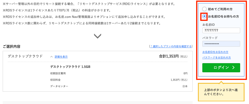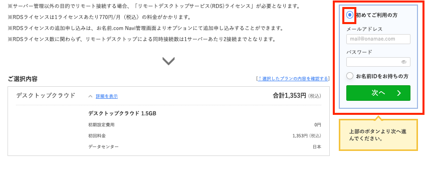 VPS契約をするこちらをクリックするとお名前.comのVPS契約サイトに飛びます。