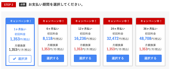 「最小スペック」の「1.5GBプラン」の場合、まとめてお支払いしても安くならないので1ヶ月毎でもいいと思います。また、過去にお名前ドットコムではプランのバージョン変更・金額変更が多々行われていますので最新のものに切り替えるには1ヶ月毎のお支払いにしておいた方が常にいい状態のプランをご契約できると思います。