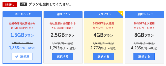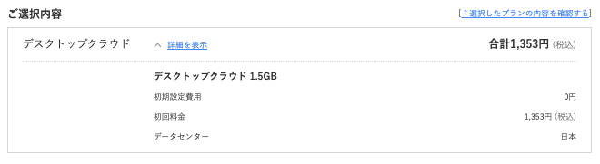 プランは「最小スペック」の「1.5GBプラン」で稼働することが確認できていますのでこちらで十分かと思います。